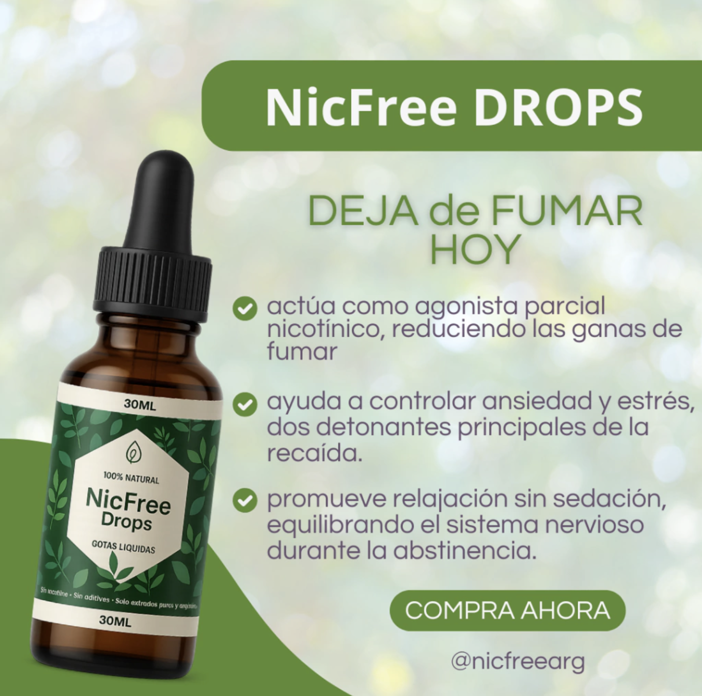 ¡2x1 NicFree Drops™ | Respirá tranquilo y dejá el cigarrillo atrás con un apoyo simple y discreto que te acompaña en los momentos críticos de antojo.