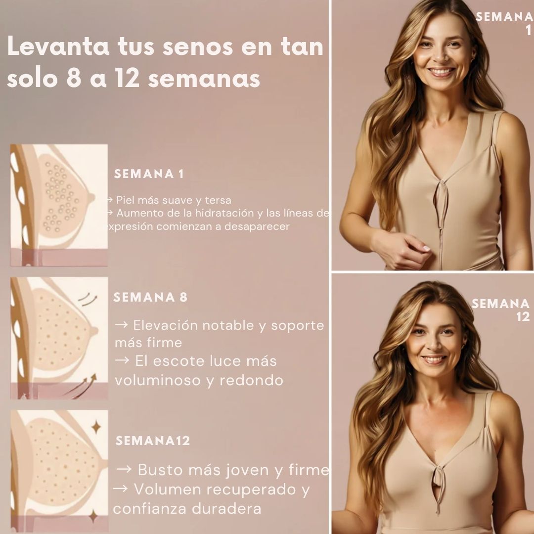 ✅ Reafirma y levanta naturalmente: estimula la elasticidad de la piel del busto, restaurando su forma y firmeza.