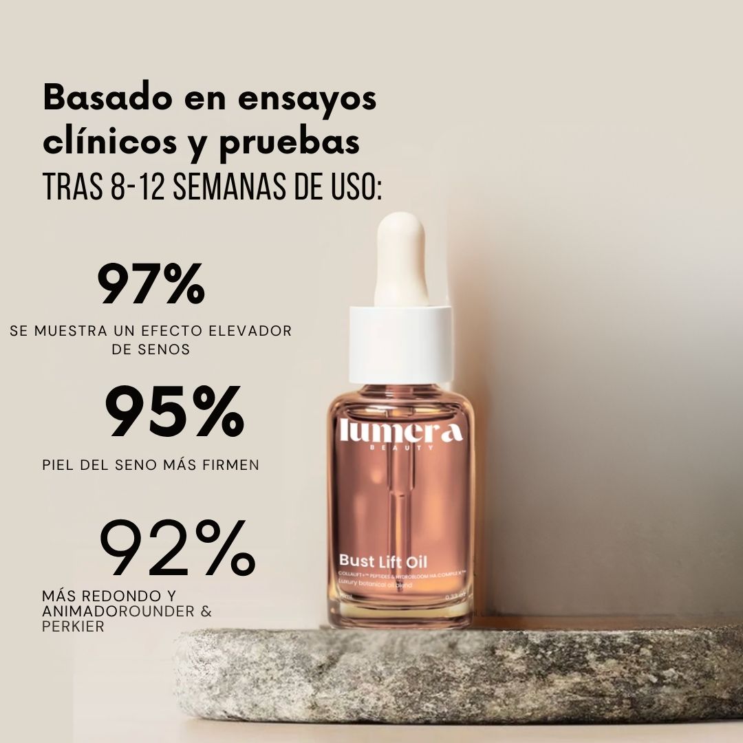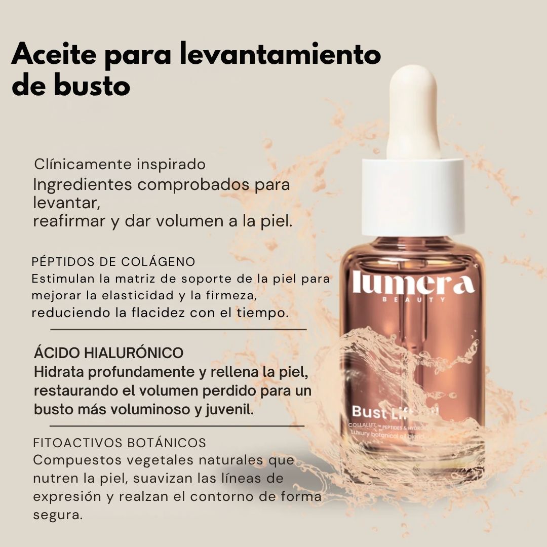 El 2x1 Sérum Levanta Senos de Lumera Beauty te brinda resultados visibles desde las primeras semanas. Su fórmula combina colágeno, péptidos y ácido hialurónico para una piel más tensa, suave y luminosa. Ideal para uso diario — sin dolor, sin riesgos y sin procedimientos invasivos.