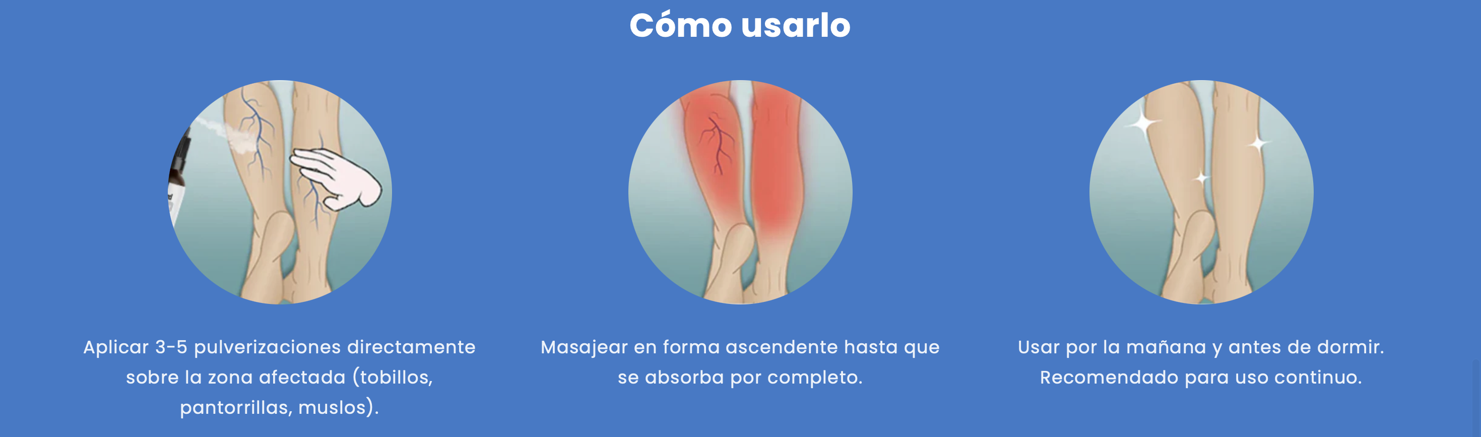 El alivio es inmediato. En pocos minutos vas a sentir frescura y menos pesadez. Con el uso diario, mejora visiblemente la circulación.