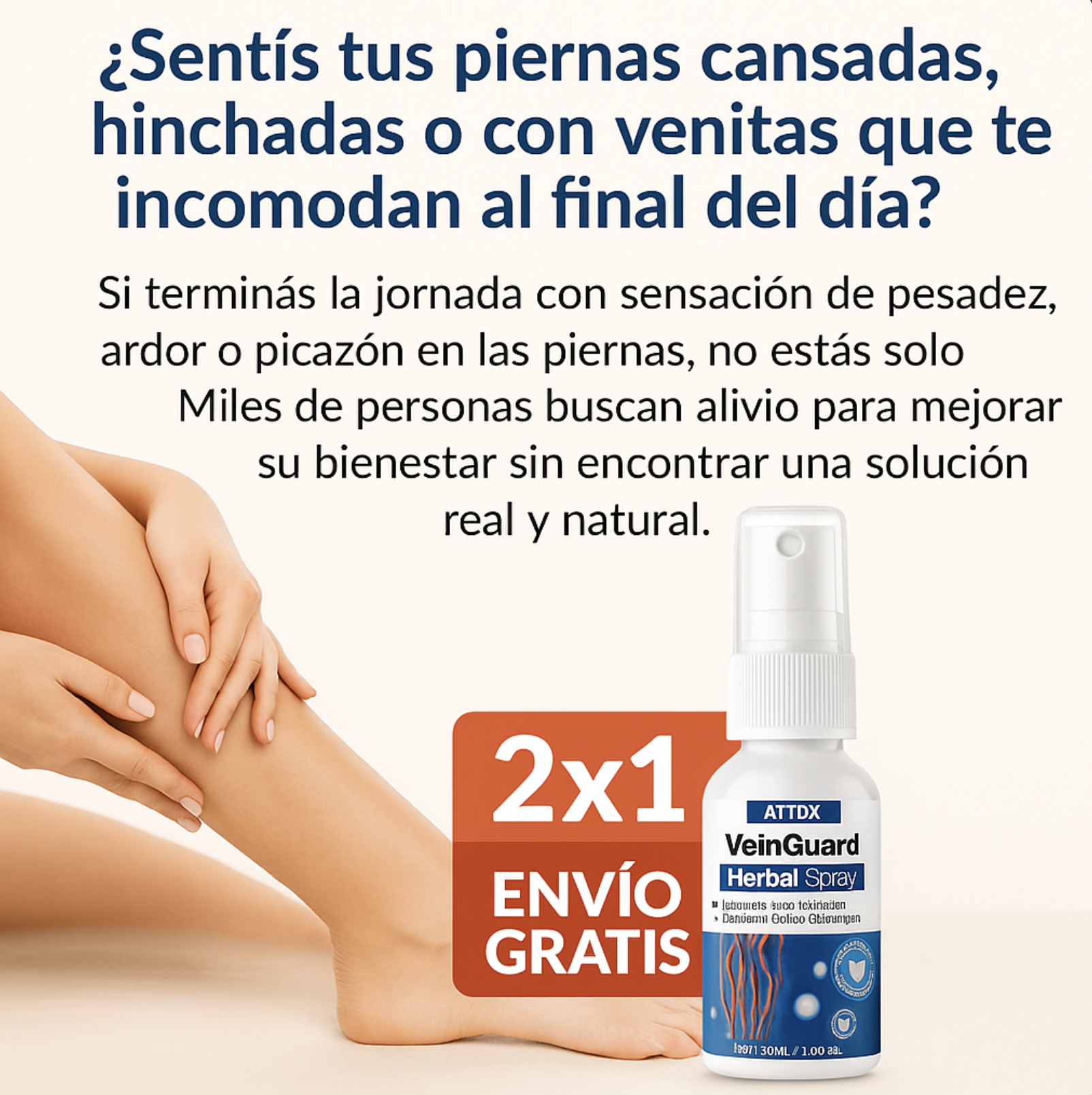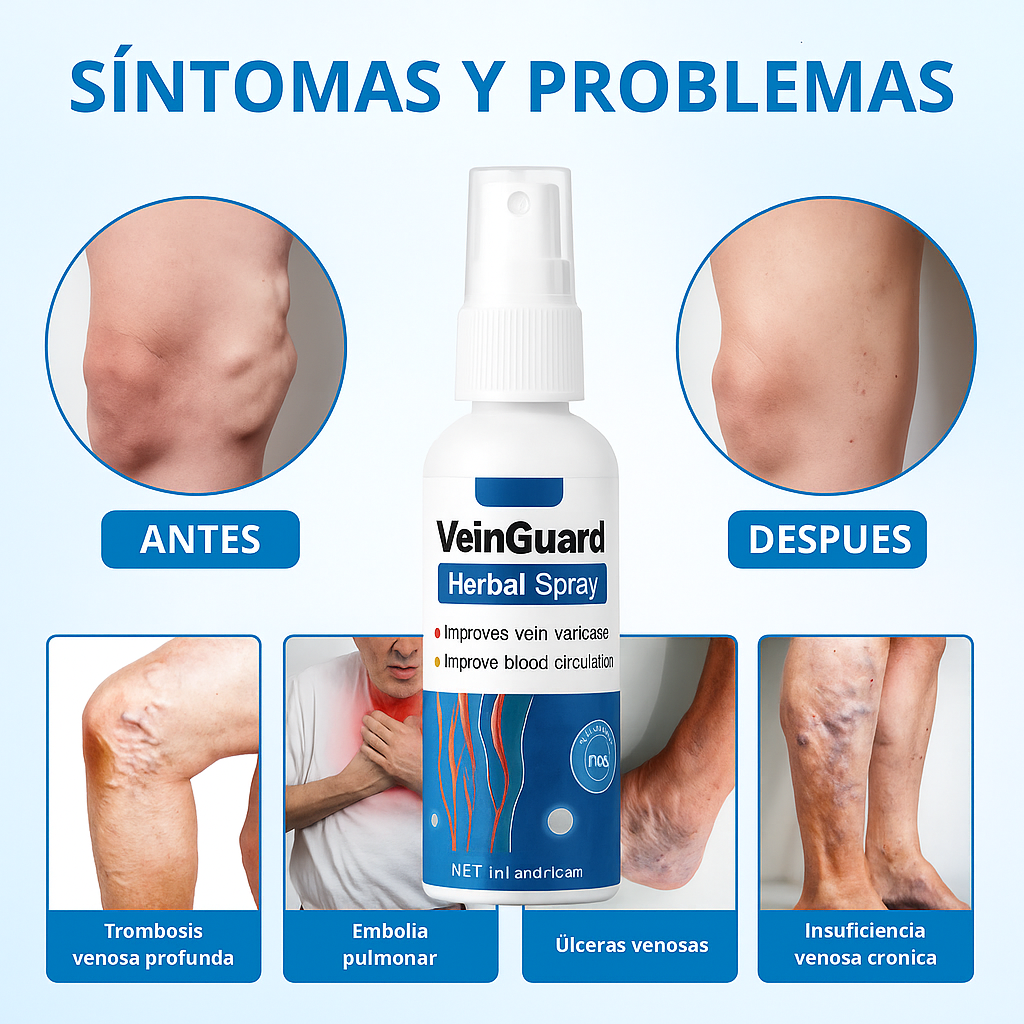 ¡El nuevo 2X1 VEINGUARD Herbal Spray llegó para transformar el bienestar de tus piernas! Su fórmula herbal avanzada combina extractos naturales que desinflaman, alivian la pesadez y mejoran la circulación desde la primera aplicación.